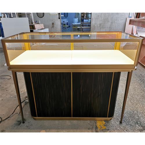拉丝香槟金不锈钢珠宝展柜_高端珠宝展示柜